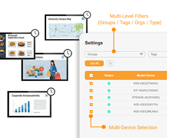 Remotely manage multiple displays simultaneously from a single cloud-based platform. Save time on configuration, monitoring, and routine maintenance.
